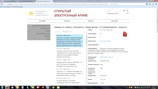 Помощь по навигации на сайте Открытого архива ЕУСПб