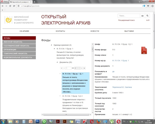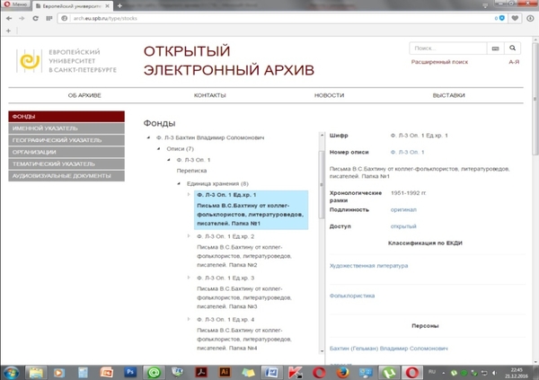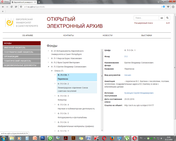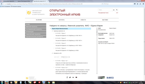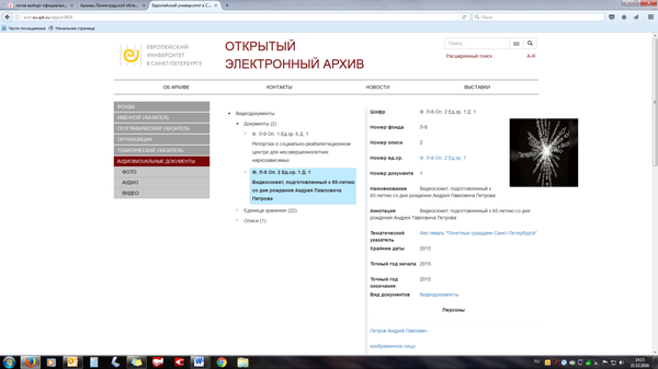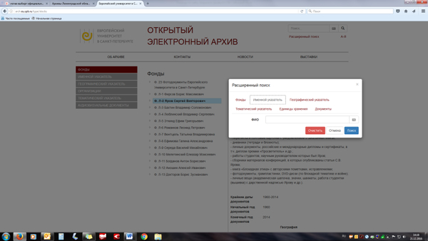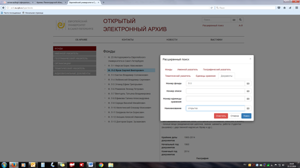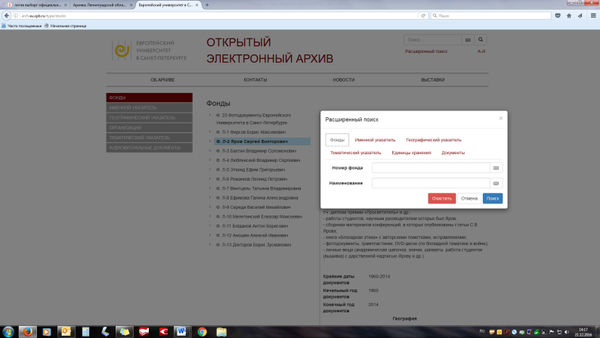 Помощь по навигации на сайте Открытого архива ЕУСПб